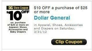 Those of you shopping at Dollar General today, make sure you take along with you this $10 off $25 for Dollar General– good on Apparel, Shoes, Accessories & Diapers… and valid today only.