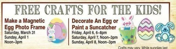 You can also decorate an egg, make a magnetic photo frame, or participate in an Easter Egg Hunt at various times through Easter. Head HERE to see the schedule of activities at your local store.